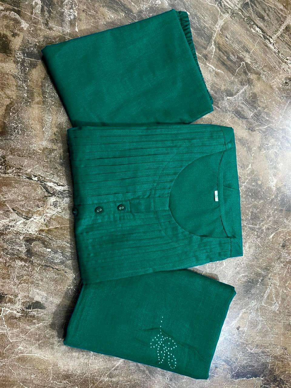 Green Long Kurta having Discharge Floral Print and Printex, Pants & Dupatta Size-M